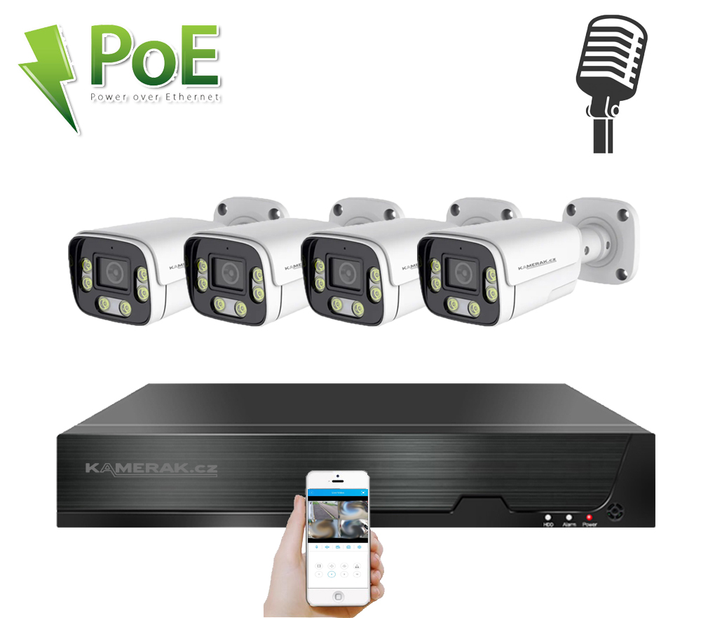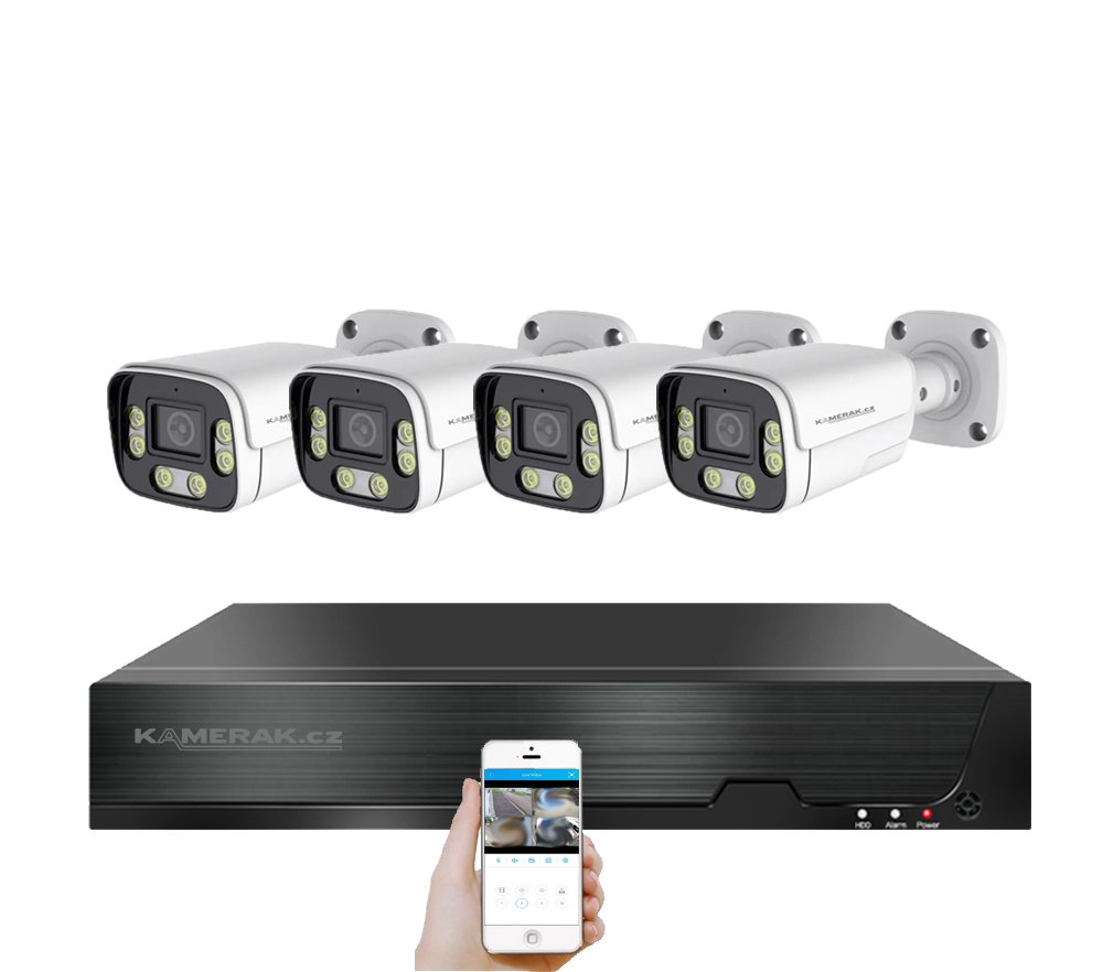 Digitální kamerový set PoE IP XM-406D 8MPx značky KAMERAK.cz nabízí vizuální zabezpečení Vašeho domu, chaty, skladu obchodu a dalších prostor. Velmi jednoduchá instalace , kdy stačí pouze propojit samotné kamery s NVR pomocí UTP kabelu a následně podle českého návodu v rekordéru načíst IP adresy kamer. Napájení kamer se provádí, společně s daty, pomocí UTP kabelu přímo z NVR, tudíž není třeba řešit problematiku externího napájení. Díky jednoduchému a intuitivnímu zapojení zvládnete instalaci dohledového systému svépomocí. Součástí kamerového setu jsou všechny potřebné komponenty pro zprovoznění (pro záznam je nutný pouze HDD, který není součástí balení). Při nákupu HDD společně s kamerovým setem Vám jej zdarma odborně nainstalujeme. Lze připojit záznamové zařízení pomocí síťového kabelu do Vašeho routeru a tím získáte vzdálený přístup a sledování obrazu kamer na Vašem telefonu (Android, iOS), tabletu nebo PC. Menu NVR je v českém jazyce a součástí balení je i český návod, díky tomu je ovládání kamerového systému velmi jednoduché.