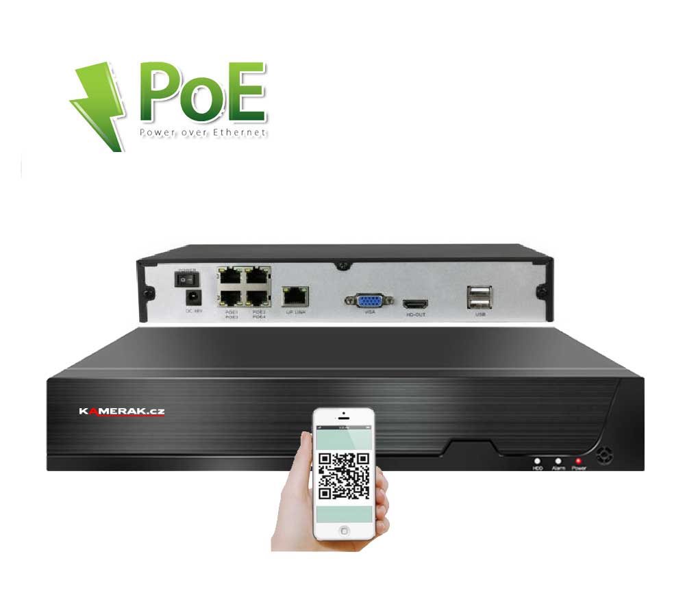 Digitální kamerový set značky nabízí vizuální zabezpečení Vašeho domu, chaty, skladu obchodu a dalších prostor. Velmi jednoduchá instalace , kdy stačí pouze propojit samotné kamery s NVR pomocí UTP kabelu a následně podle českého návodu v rekordéru načíst IP adresy kamer. Napájení kamer se provádí, společně s daty, pomocí UTP kabelu přímo z NVR, tudíž není třeba řešit problematiku externího napájení. Díky jednoduchému a intuitivnímu zapojení zvládnete instalaci dohledového systému svépomocí. Součástí kamerového setu jsou všechny potřebné komponenty pro zprovoznění (pro záznam je nutný pouze HDD, který není součástí balení). Při nákupu HDD společně s kamerovým setem Vám jej zdarma odborně nainstalujeme. Lze připojit záznamové zařízení pomocí síťového kabelu do Vašeho routeru a tím získáte vzdálený přístup a sledování obrazu kamer na Vašem telefonu (Android, iOS), tabletu nebo PC. Menu NVR je v českém jazyce a součástí balení je i český návod, díky tomu je ovládání kamerového systému velmi jednoduché.