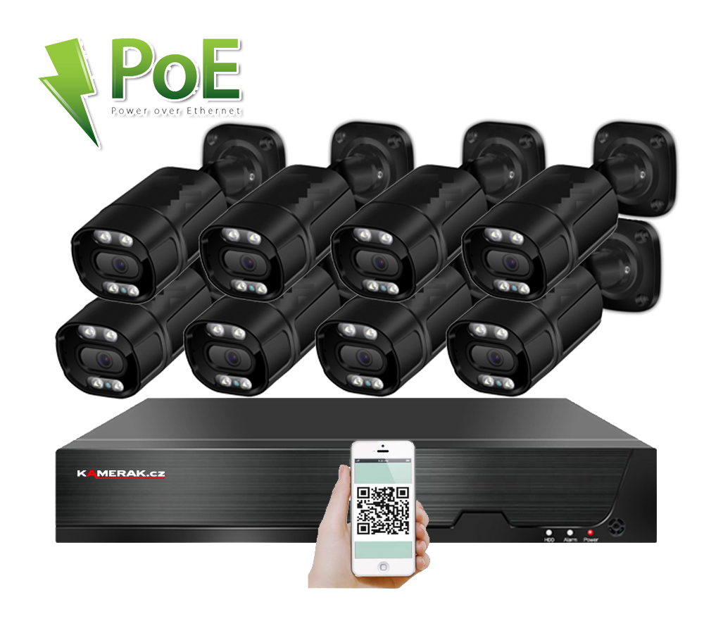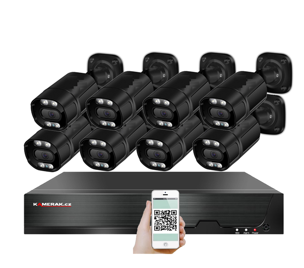 VOLNA PoE IP 8 kamerovy set XM-813C black 5MPx, CZ menu - Cena: -10 Kč