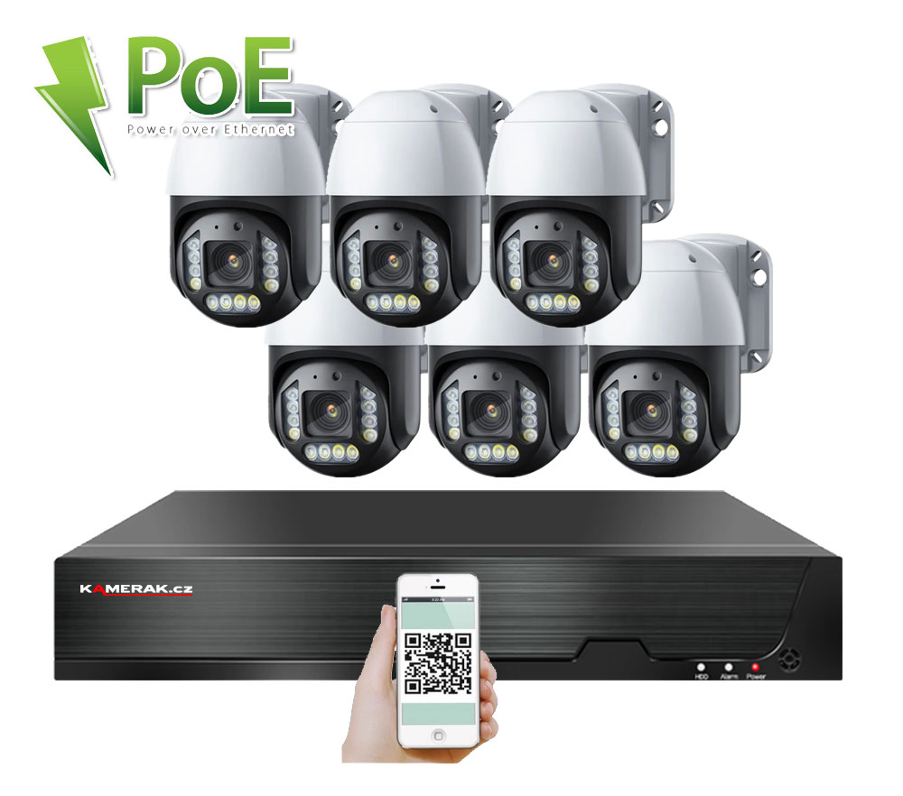 Digitální kamerový set PoE XM-PTZ-620D 8Mpx značky KAMERAK.cz nabízí vizuální zabezpečení Vašeho domu, chaty, skladu obchodu a dalších prostor. Velmi jednoduchá instalace , kdy stačí pouze propojit samotné kamery s NVR pomocí UTP kabelu a následně podle českého návodu v rekordéru načíst IP adresy kamer. Napájení kamer se provádí, společně s daty, pomocí UTP kabelu přímo z NVR, tudíž není třeba řešit problematiku externího napájení. Díky jednoduchému a intuitivnímu zapojení zvládnete instalaci dohledového systému svépomocí. Součástí kamerového setu jsou všechny potřebné komponenty pro zprovoznění (pro záznam je nutný pouze HDD, který není součástí balení). Při nákupu HDD společně s kamerovým setem Vám jej zdarma odborně nainstalujeme. Lze připojit záznamové zařízení pomocí síťového kabelu do Vašeho routeru a tím získáte vzdálený přístup a sledování obrazu kamer na Vašem telefonu (Android, iOS), tabletu nebo PC. Menu NVR je v českém jazyce a součástí balení je i český návod, díky tomu je ovládání kamerového systému velmi jednoduché.