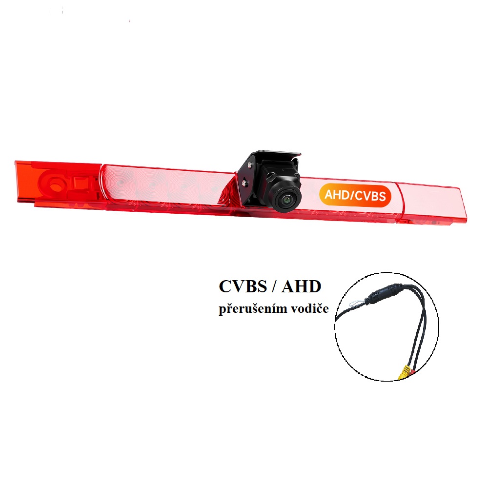 Kameru lze přerušením vodiče přepnout z CVBS na AHD, dle potřeby.
