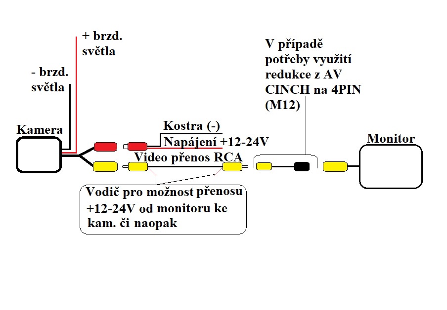 Zapojení: AV cinch data (součástí redukce na 4PIN (M12)