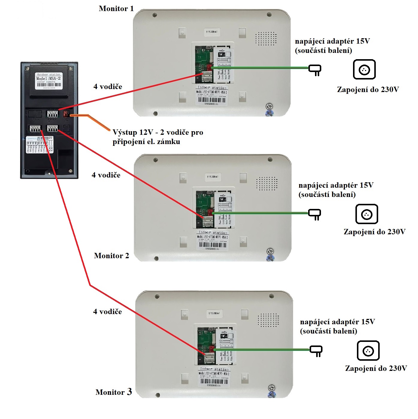 Externí zařízení: tato sada podporuje také zapojení přídavných zařízení, jako je elektrický zámek dodatečné