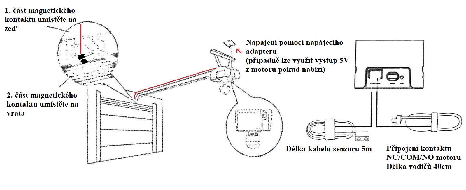 1x Magnetické čidlo stavu otevření vrat, délka kabelu 5m