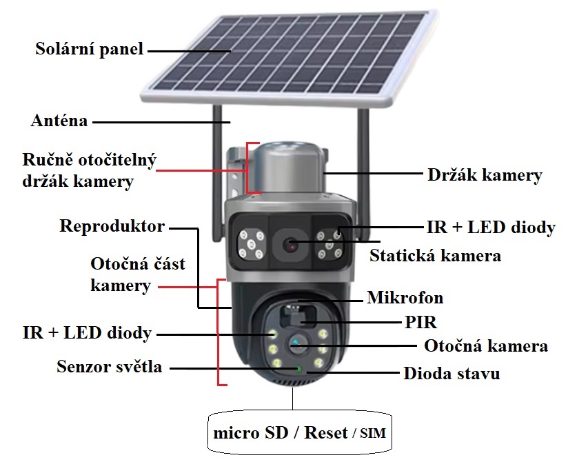 Špičková monitorovací kamera představuje kompletně bezdrátové řešení, eliminující potřebu jakéhokoliv kabelového propojení. Energii získává z kombinace solárního panelu a vysokokapacitní záložní baterie, která zajišťuje provoz až po dobu 3 měsíců na jedno nabití. Komunikace probíhá prostřednictvím SIM karty s mobilními daty vložené přímo do kamery.
