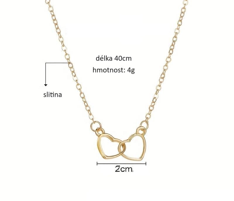 dárek řívěšek/Náhrdelník s dvojitým srdcem ze slitiny v barvě zlata