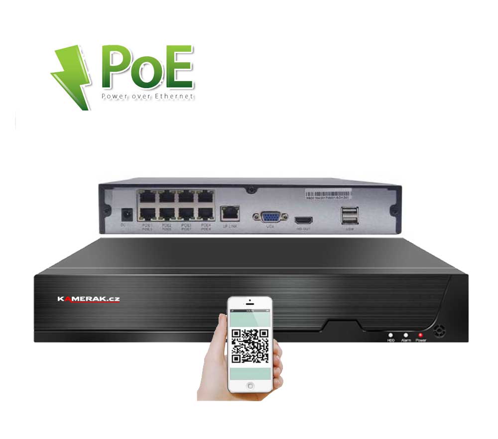 Digitální kamerový set PoE IP XM-602D 8MPx značky KAMERAK.cz nabízí vizuální zabezpečení Vašeho domu, chaty, skladu obchodu a dalších prostor. Velmi jednoduchá instalace , kdy stačí pouze propojit samotné kamery s NVR pomocí UTP kabelu a následně podle českého návodu v rekordéru načíst IP adresy kamer. Napájení kamer se provádí, společně s daty, pomocí UTP kabelu přímo z NVR, tudíž není třeba řešit problematiku externího napájení. Díky jednoduchému a intuitivnímu zapojení zvládnete instalaci dohledového systému svépomocí. Součástí kamerového setu jsou všechny potřebné komponenty pro zprovoznění (pro záznam je nutný pouze HDD, který není součástí balení). Při nákupu HDD společně s kamerovým setem Vám jej zdarma odborně nainstalujeme. Lze připojit záznamové zařízení pomocí síťového kabelu do Vašeho routeru a tím získáte vzdálený přístup a sledování obrazu kamer na Vašem telefonu (Android, iOS), tabletu nebo PC. Menu NVR je v českém jazyce a součástí balení je i český návod, díky tomu je ovládání kamerového systému velmi jednoduché.