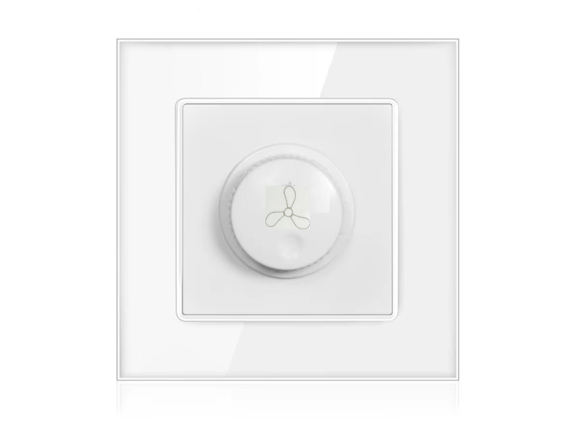 SRAN vypínač s regulátorem pro větrák/ventilaci včetně rámečku, sklo bílý - Cena: 90 Kč