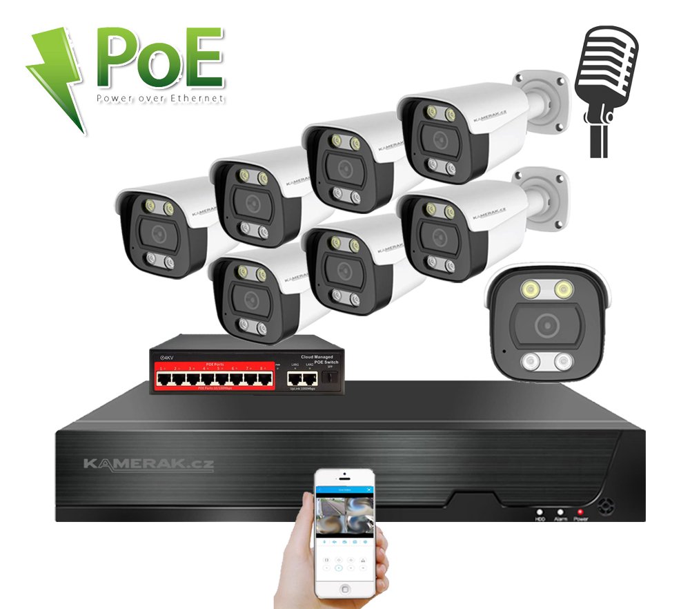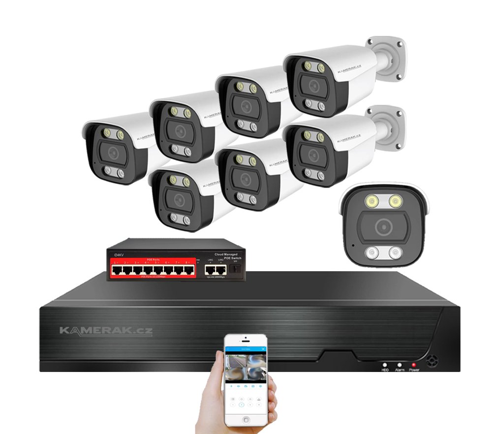 Zabezpečte svůj majetek s IP 8 kamerovým setem. Snadná instalace, PoE napájení, vzdálený přístup a české menu pro pohodlné ovládání.