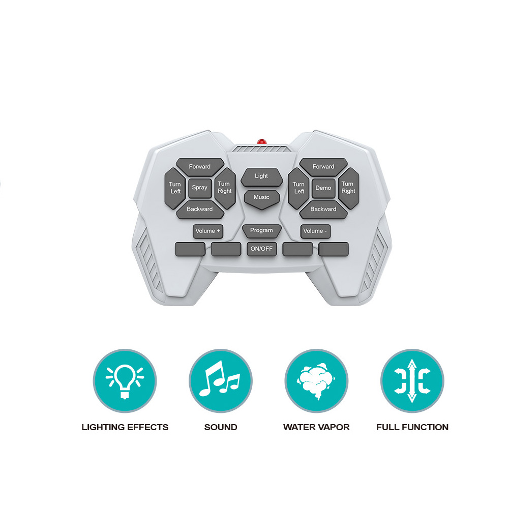 2. Multifunkční Dálkové Ovládání: Robustní RC ovladač umožňuje plnou kontrolu nad pohybem dinosaura (vpřed/vzad, zatáčení vlevo/vpravo) a aktivaci speciálních funkcí.