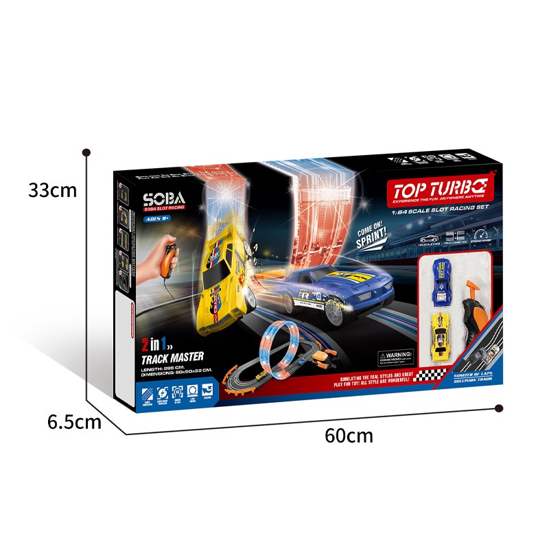 Součástí sady jsou dva ergonomické ovladače s funkcí TURBO BOOST – stiskněte tlačítko a získejte krátký, ale rozhodující nárůst rychlosti pro předjetí soupeře na poslední chvíli! Zapomeňte na hádání, kdo vede; zabudované počítadlo kol zajistí spravedlivý a přesný průběh každého závodu.