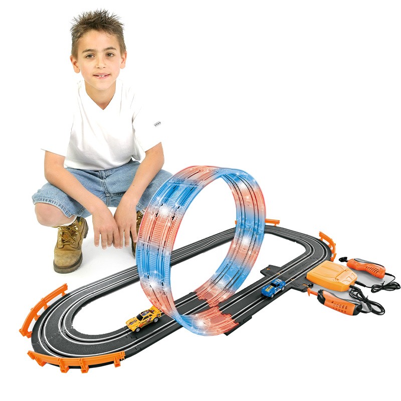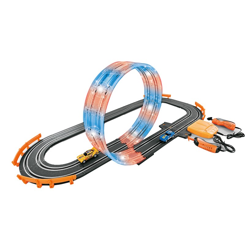 Dominantou okruhu je velká 360° smyčka, která za jízdy svítí (modře a oranžově), což vytváří neuvěřitelnou vizuální show, zejména při hře ve tmě! Celková délka trati dosahuje 295 cm, což zaručuje dostatek prostoru pro rychlé souboje a předjíždění. Rozměry sestavené dráhy jsou kompaktní, ale dráha je plná zatáček a výzev.