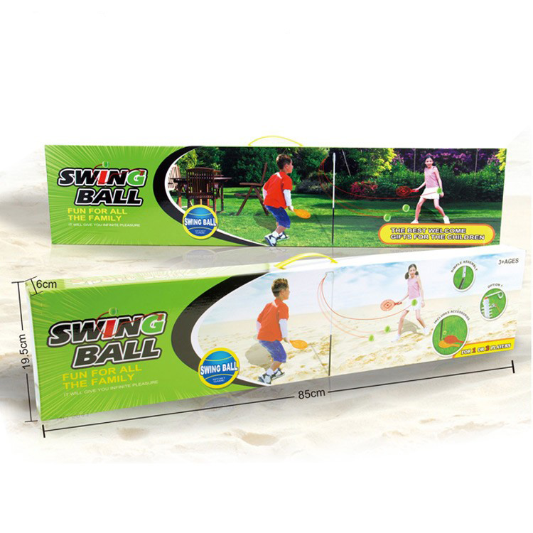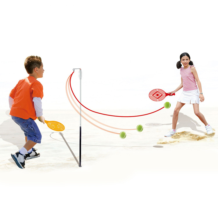 Arkádový tenis Swing Ball je ideální sportovní hračka pro aktivní zábavu venku. Souprava obsahuje kovovou tyč, kterou jednoduše zapíchnete do země, tenisový míček připevněný na provázku a dvě rakety. Hráči odpálí míček a soupeř se jej snaží vrátit – hra je dynamická, zábavná a nikdy neskončí ztraceným míčkem.