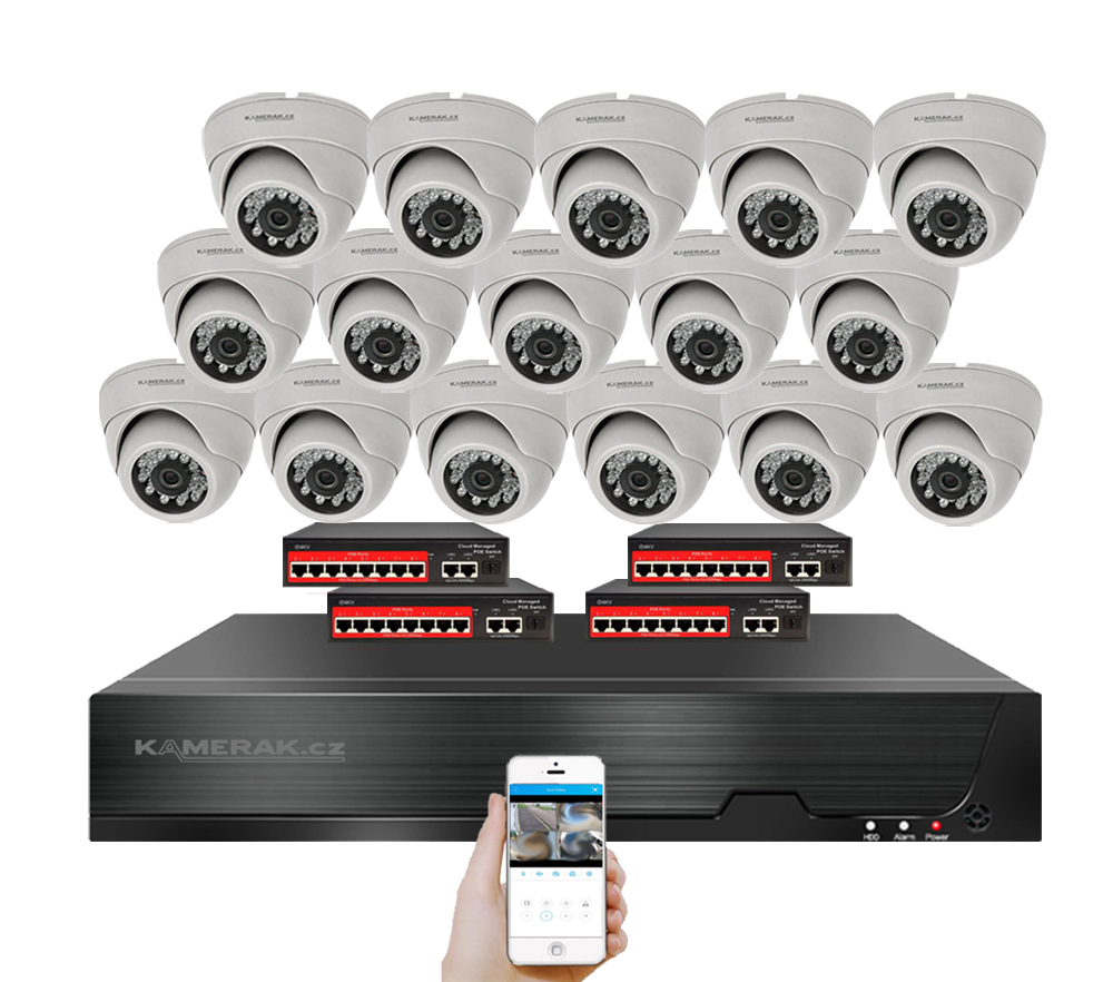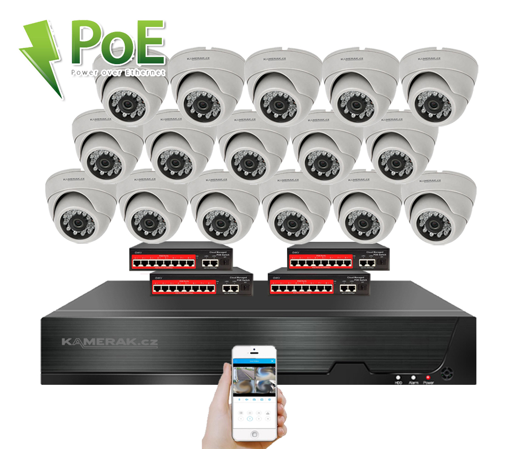 IP 16 kamerový set s externím PoE poskytuje jednoduché a efektivní zabezpečení vašich prostor s intuitivní instalací.