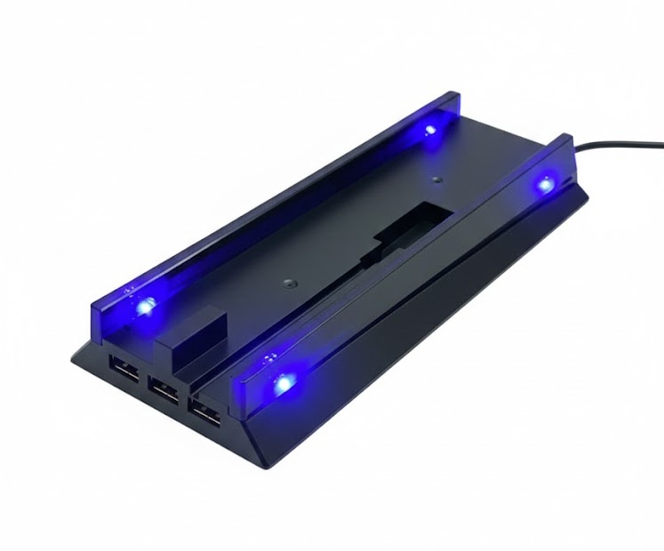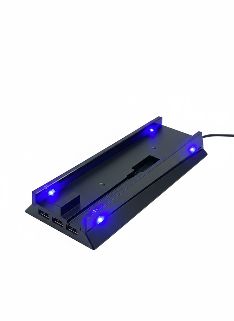 Pokud hrajete na PS4 FAT, víte, že design a pořádek v kabelech jsou základ. Tento stojan kombinuje obojí – vypadá skvěle díky modrému LED lemování a zároveň slouží jako praktická rozdvojka pro vaše USB zařízení. Je to ideální volba pro každého, kdo chce mít svou konzoli v bezpečí a ve stylu.